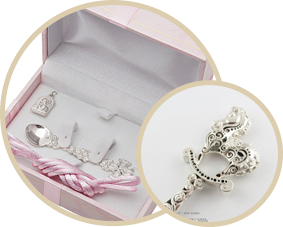 Хорошим подарком станут такие милые вещицы, как серебряные погремушки, шкатулки, столовые приборы и комплекты, кружки и поильники. Они обязательно пригодятся при уходе за новорожденным. К тому же, серебро имеет дезинфицирующие свойства, что важно, если речь идет о маленьком ребенке.