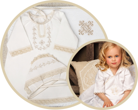 Без него на Таинстве Крещения не обойтись, ведь ребенок должен быть одет так, чтобы это соответствовало традиции. В крестильный комплект входят рубашка или платье, пеленка или полотенце (крыжма), чепчик или косынка, украшенные кружевами и вышивкой. Крестильный набор обычно хранят всю жизнь.