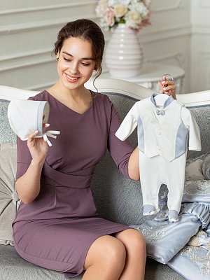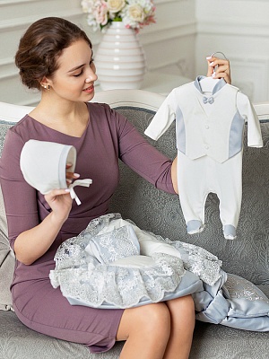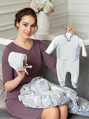дополнительно трикотажный костюмчик с легкой шапочкой для мальчика (подходят 2 костюмчика с жилетом - Мерлетто Циркон, и Джентльмен серый);