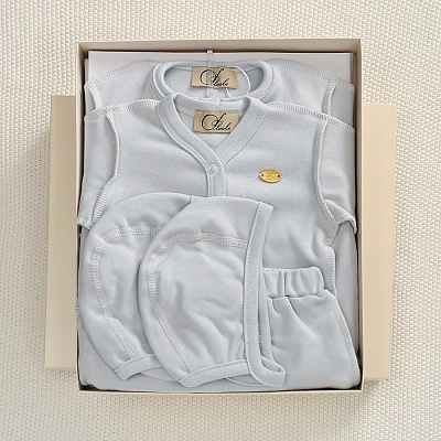 дополнительно трикотажный костюмчик с легкой шапочкой для мальчика (подходят 2 костюмчика с жилетом - Мерлетто и Джентльмен в голубом цвете);