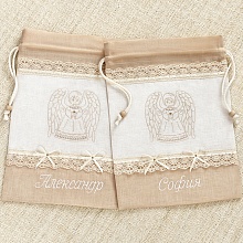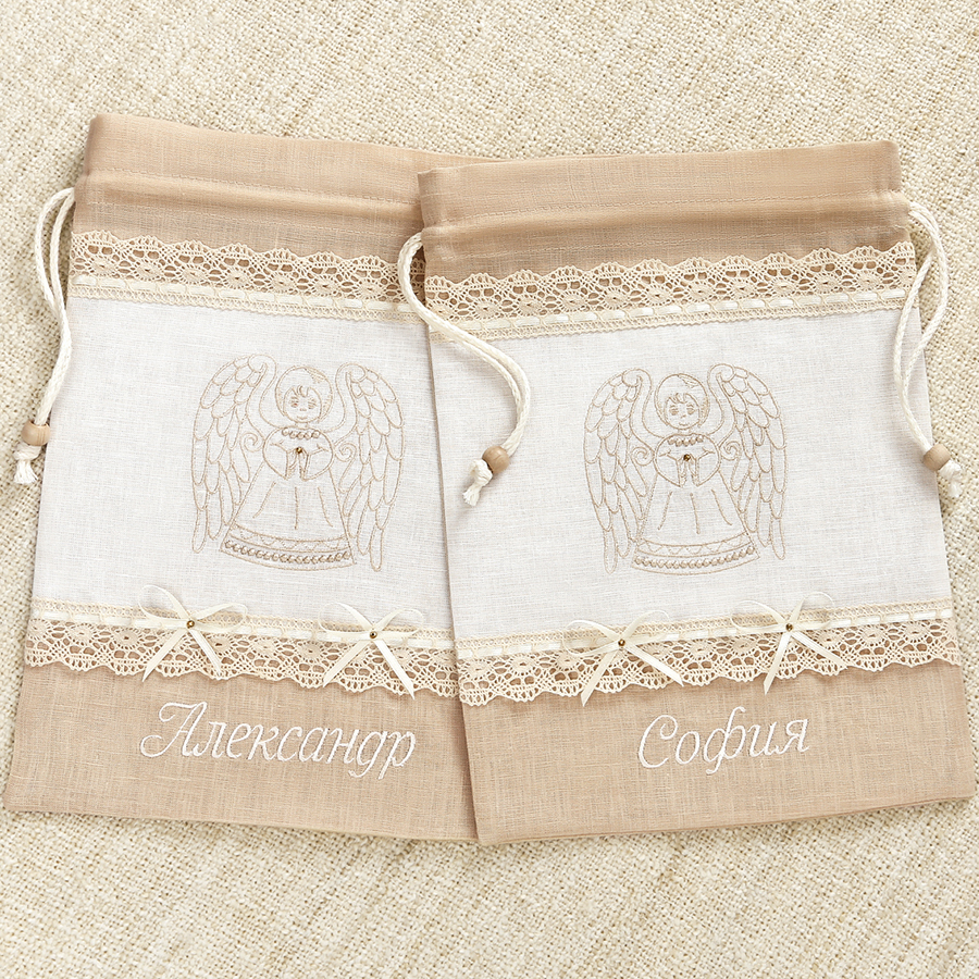Красивый мешочек для хранения крестильных принадлежностей. Выполнен из хлопка и льна.