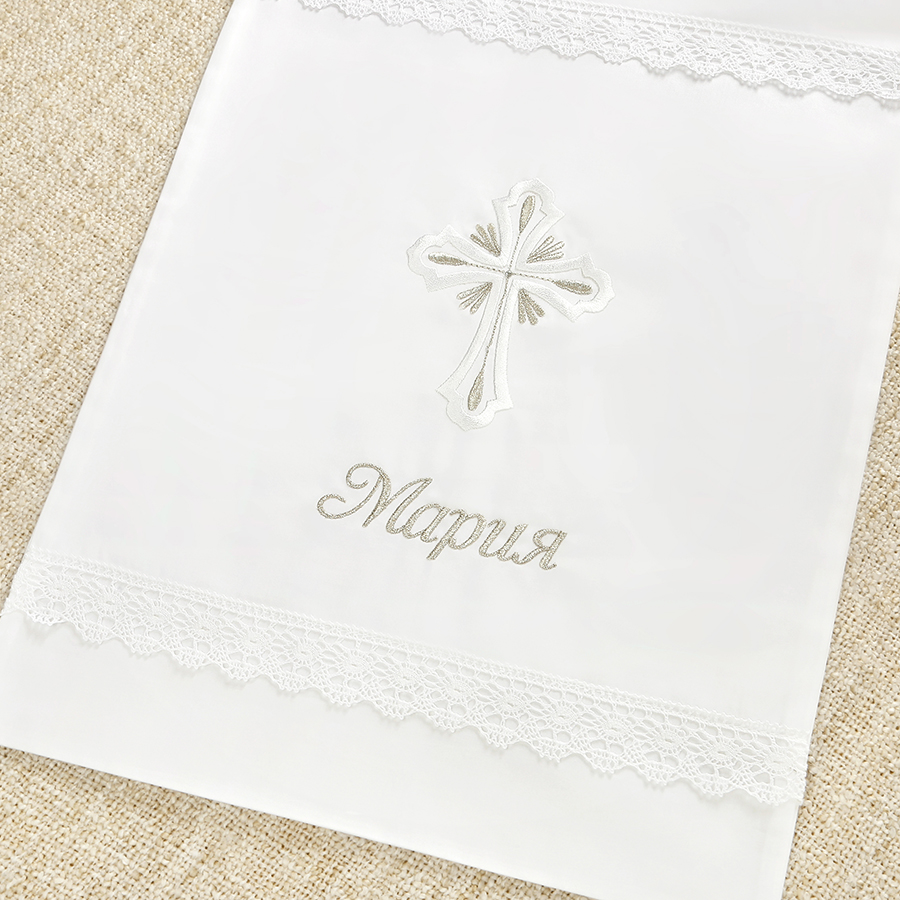 Индивидуальная вышивка за 1 рабочий день. Можно вышить имя крещаемого, дату крестин или фразу "Спаси и сохрани".
