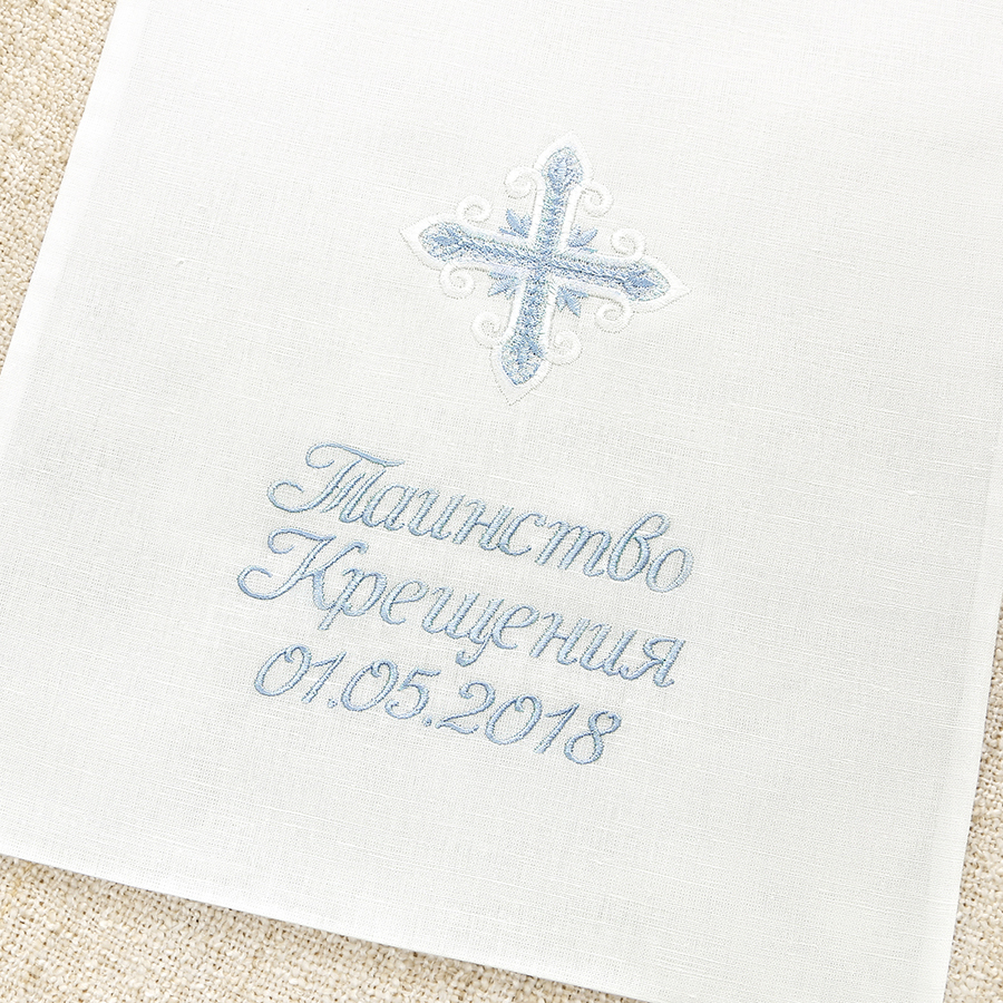 Под крестом можно вышить имя крещаемого и дату крестин всего за один рабочий день.