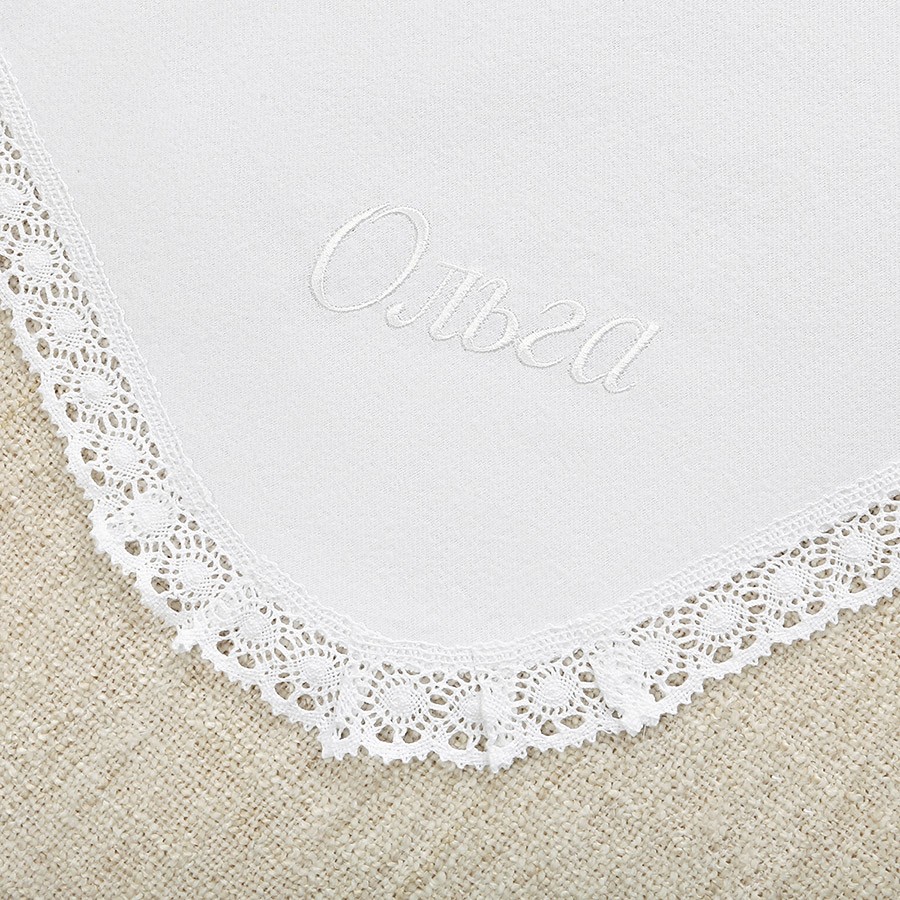 Кружевная пеленка 90х90 см с вышитым капюшоном