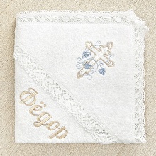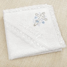 Полотенце, в которое будете принимать ребенка от купели можно выбрать из трех вариантов: