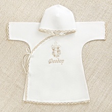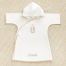 Фланелевый набор для проведения Таинства Крещения в холодный сезон. Состоит из распашонки с капюшоном и пеленки без капюшона. Оба предмета украшены вышивкой в пастельной гамме и бело-бежевым хлопковым кружевом. Оформление нейтральное, подходит и для мальчика, и для девочки. Имя ребенка можно вышить на рубашке и пеленке за 1-2 дня.