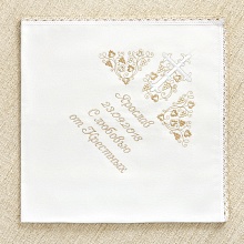 Пеленка без капюшона, по периметру обработана краевым кружевом. в одном из углов вышит крестик с лозой, как на рубашке, окруженный виноградным орнаментом.