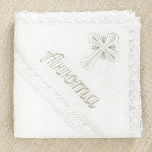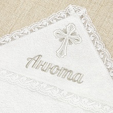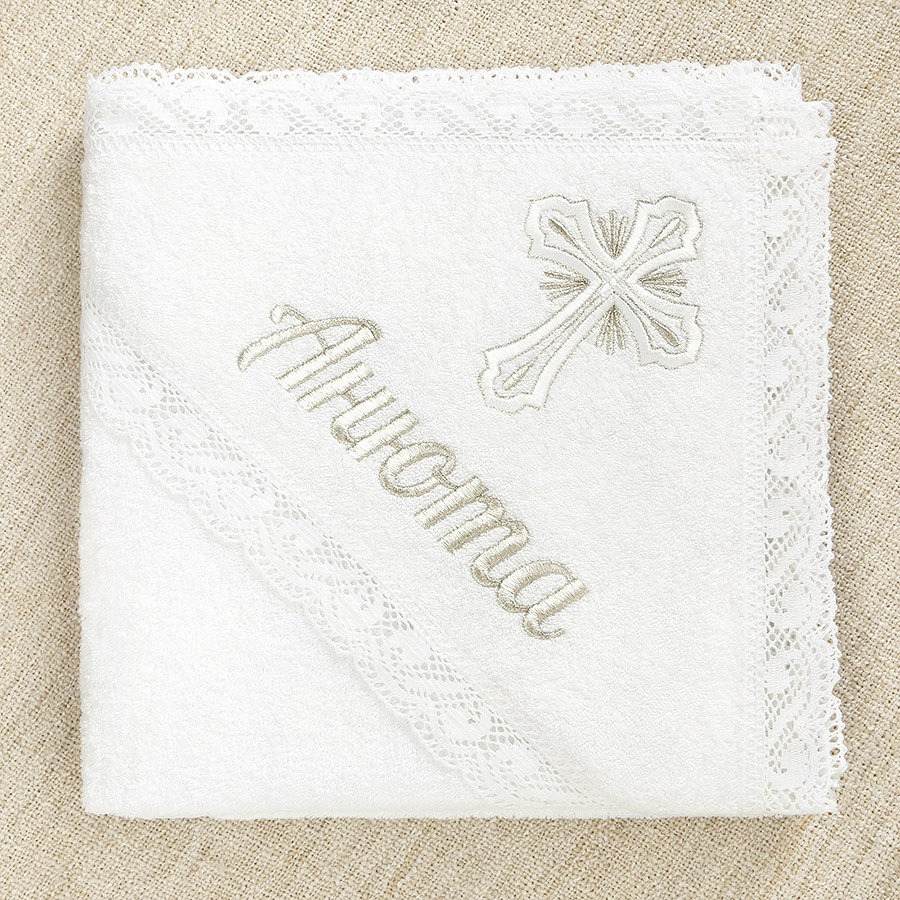 Дополнительно можно купить мешочек для хранения крестильного набора и вышить на нем именные надписи
