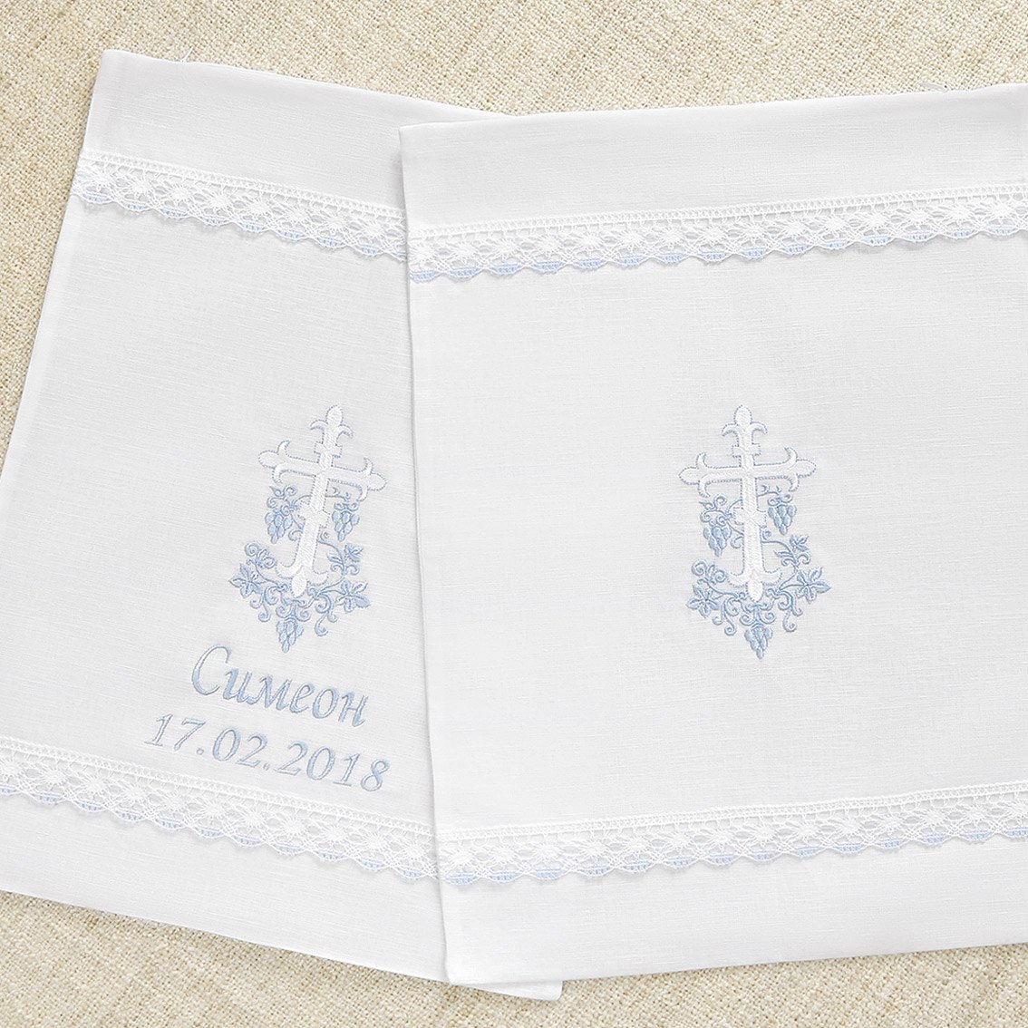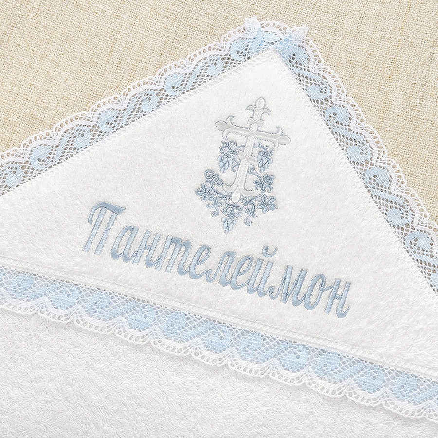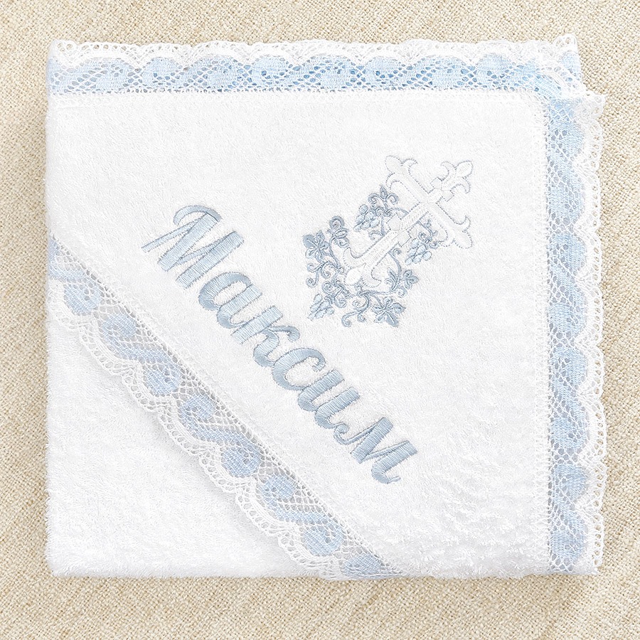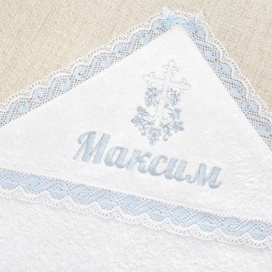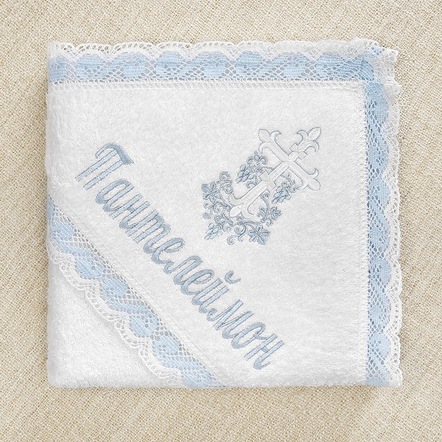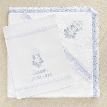 Полотенце для принятия от купели можно выбрать из трех вариантов. Это напрямую влияет на цену набора: