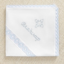 Рубашка для Крещения мальчика из тонкого хлопка-муслина с отделкой бело-голубым хлопковым кружевом. Голубой цвет нежный, пастельный, ненавязчиво смотрится в оформлении. Есть похожая рубашка с белым кружевом (на фото вместе) - модель "Василий". Рубашка надевается через голову, сзади вырез до лопаток, фиксируется на кружевные завязки. Модель с короткими рукавами, длина изделия по щиколотку. Спереди на рубашке вышит православный бело-голубой крестик. Широкие полоски кружева имитируют рукав-реглан. Такая же кружевная полоска украшает подол рубашки. Края обработаны тонким кружевом с волнистым узором. Рубашка в наличии в размерах на рост от 62 см до 92 см. Имя Александр нигде не вышито, это просто название модели. |