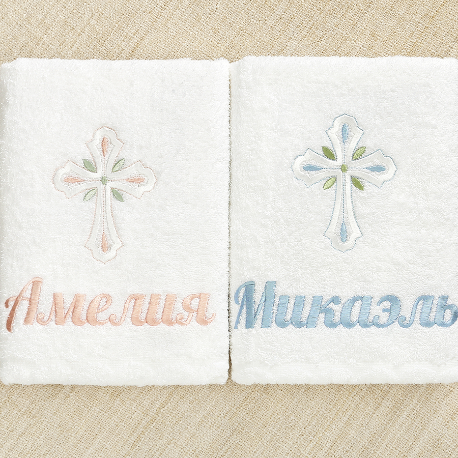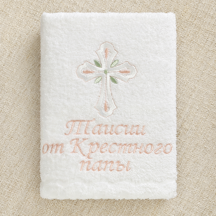 Махровое полотенце с бордюром и фабричным краем для Крещения ребенка. Размеры на выбор: 70х130, 100х150.